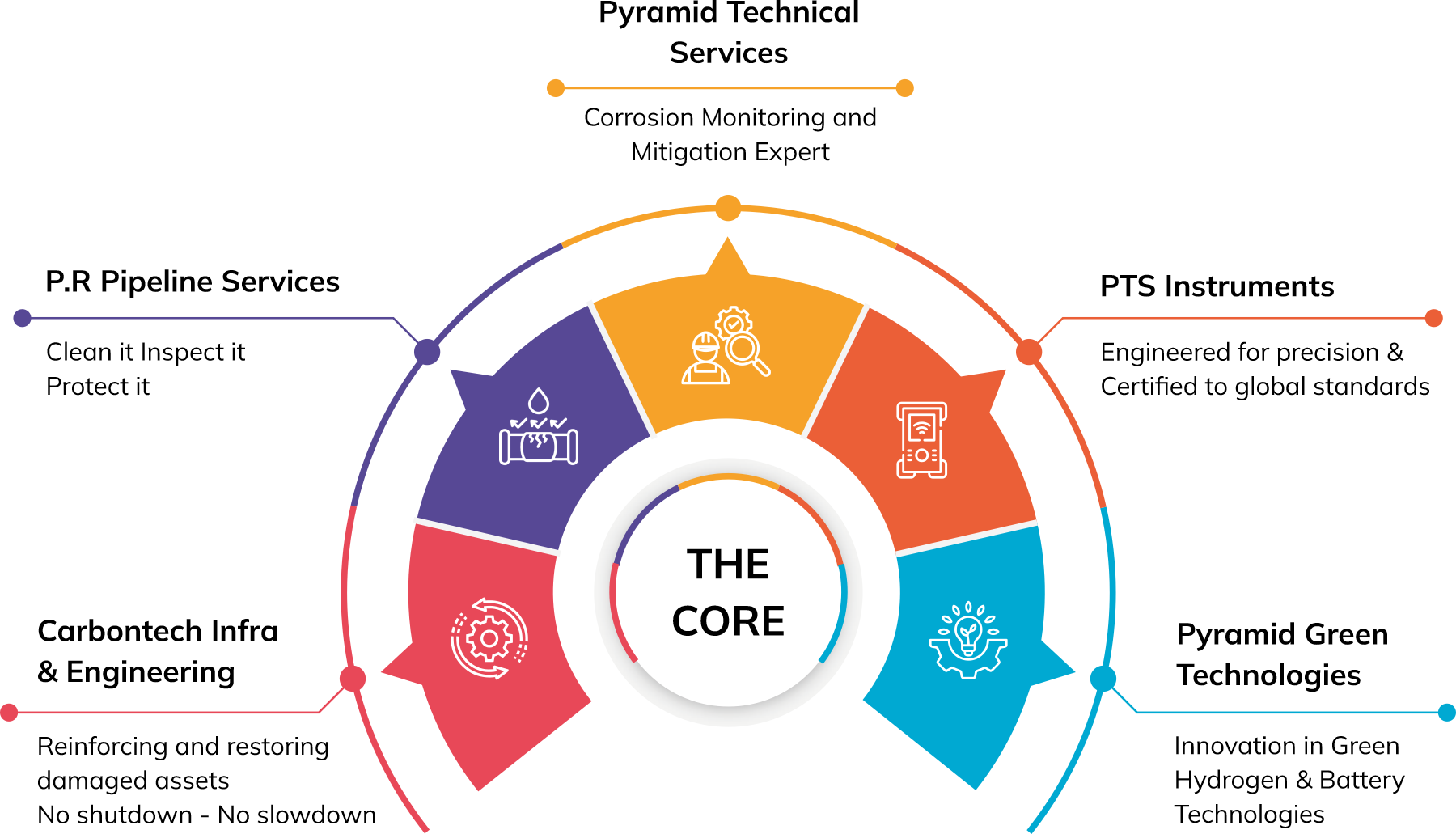 At Pyramid Group, we deliver end-to-end solutions for process and utility pipelines across upstream, midstream, and downstream Oil, Gas, and Water systems. Our capabilities span pipeline corrosion inspection, condition monitoring, strengthening and rehabilitation, as well as flow assurance through pigging, in-line inspection, and composite wrapping. By integrating design, engineering, supply, installation, commissioning, and ongoing monitoring, we provide a seamless, single-point solution across the entire pipeline lifecycle.